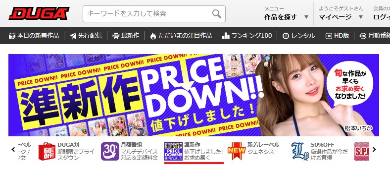 「DUGA」は、熟女ものやマニアックなエロ動画が充実したアダルト動画配信サイトです。